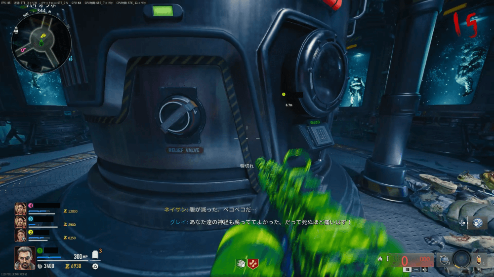□長押しで水圧を上げきると、装置が壊れて水圧計が出現するので、入手しよう。水圧を上げている間は無防備になるため、仲間に守ってもらうのがおすすめだ。