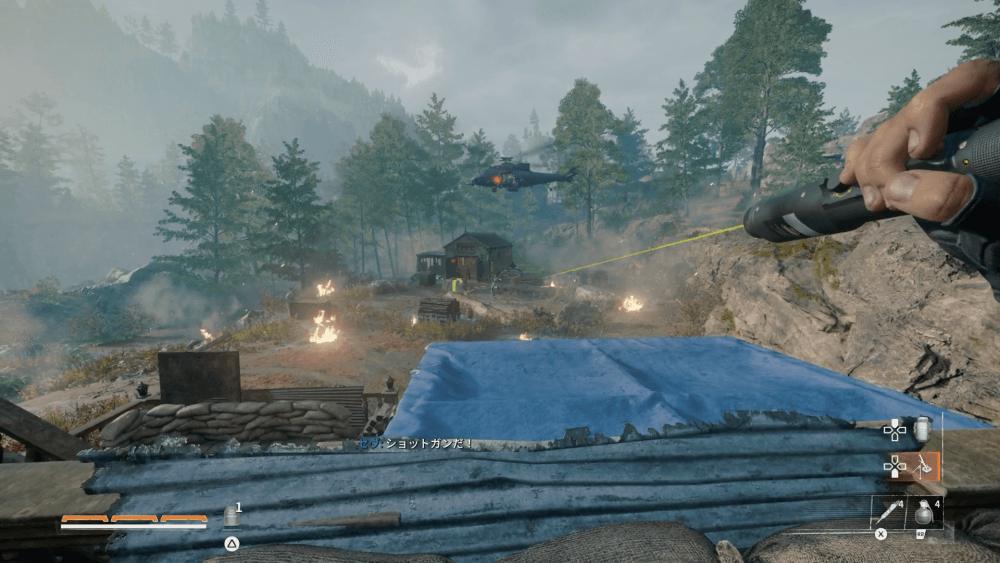 ヘリに再び掴まったら、L2ボタンでヘリに乗り込もう。乗り込む際にQTEが2度発生するので、R1ボタンを押して制圧しよう。