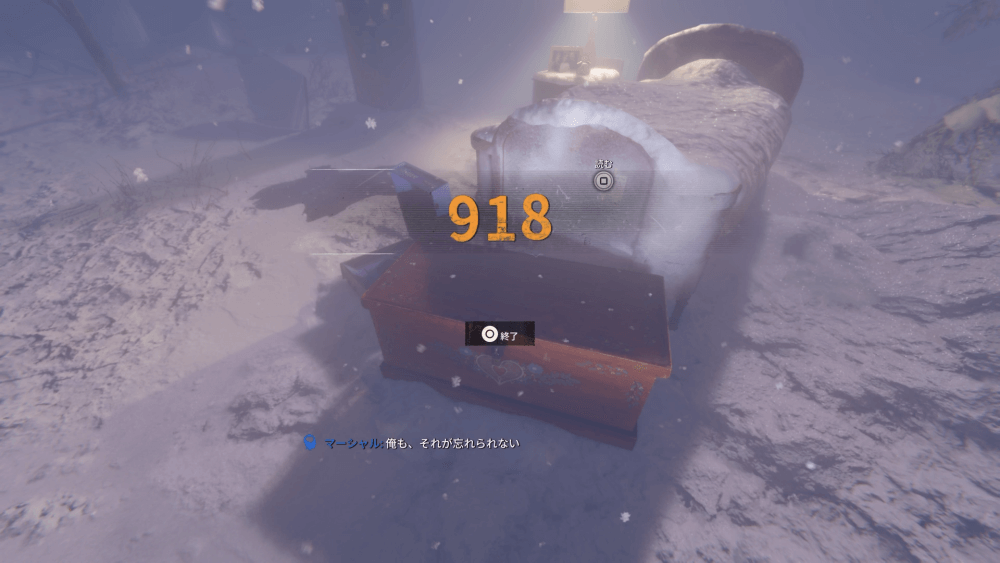 3ヶ所でメモを確認して数字がわかったら、開始地点にある箱に数字を入力し、鏡の破片を入手する。破片を入手すると、場面が転換する。