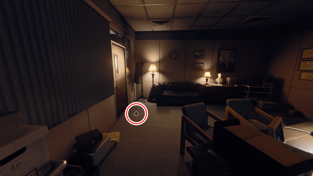 オフィスに入ったら、机にある写真を調べた後、ドアの下からディスクが入ってくる。ディスクを拾ったら、机のパソコンに挿入しよう。