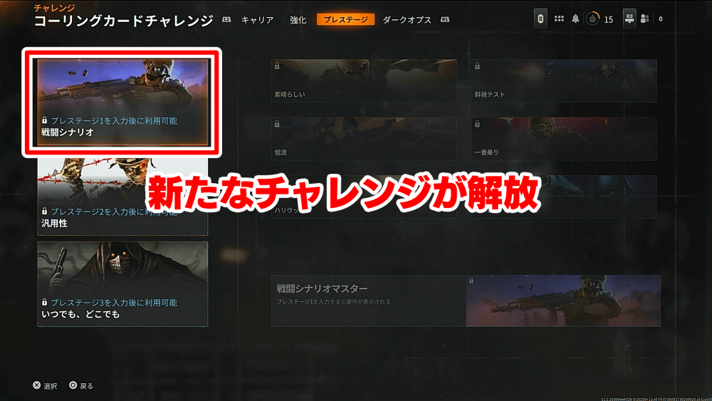 プレステージ限定のチャレンジが解放され、挑戦可能になる。条件を達成すれば、新たなコーリングカードが貰えるほか、経験値の獲得も可能だ。