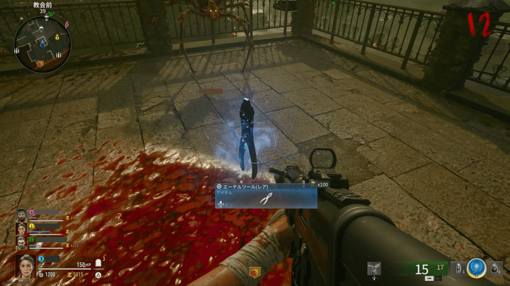 マップ 外観 爆発系の武器を準備したら、教会の屋根の上に浮いている頭のような物体を撃とう。爆発系の攻撃を頭に当てると破壊可能で、破壊後には空からゾンビの死体が降ってくる。降ってきたゾンビからは、スコアストリークやエーテルツールなどを複数入手可能だ。