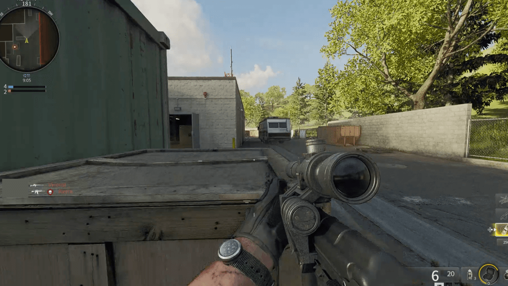 配達所の箱の裏は、リワインドにおける強いポジションだ。RV車両横のの通路を抜けようとする敵を狙え、マップの左側を制圧できる。また、すぐ隣に弾を通さないコンテナが置いてあり、危なくなったら隠れて回復も可能。