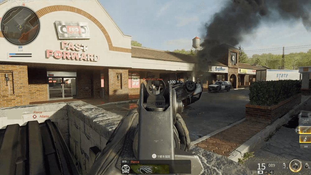 ドライブスルーのゴミ捨て場も、リワインドの強いポジションだ。塀に身を隠しながら戦え、危なくなったらしゃがめば完全に射線を切れる。広範囲を見渡して、各地の戦闘に絡み、キルの量産を狙おう。