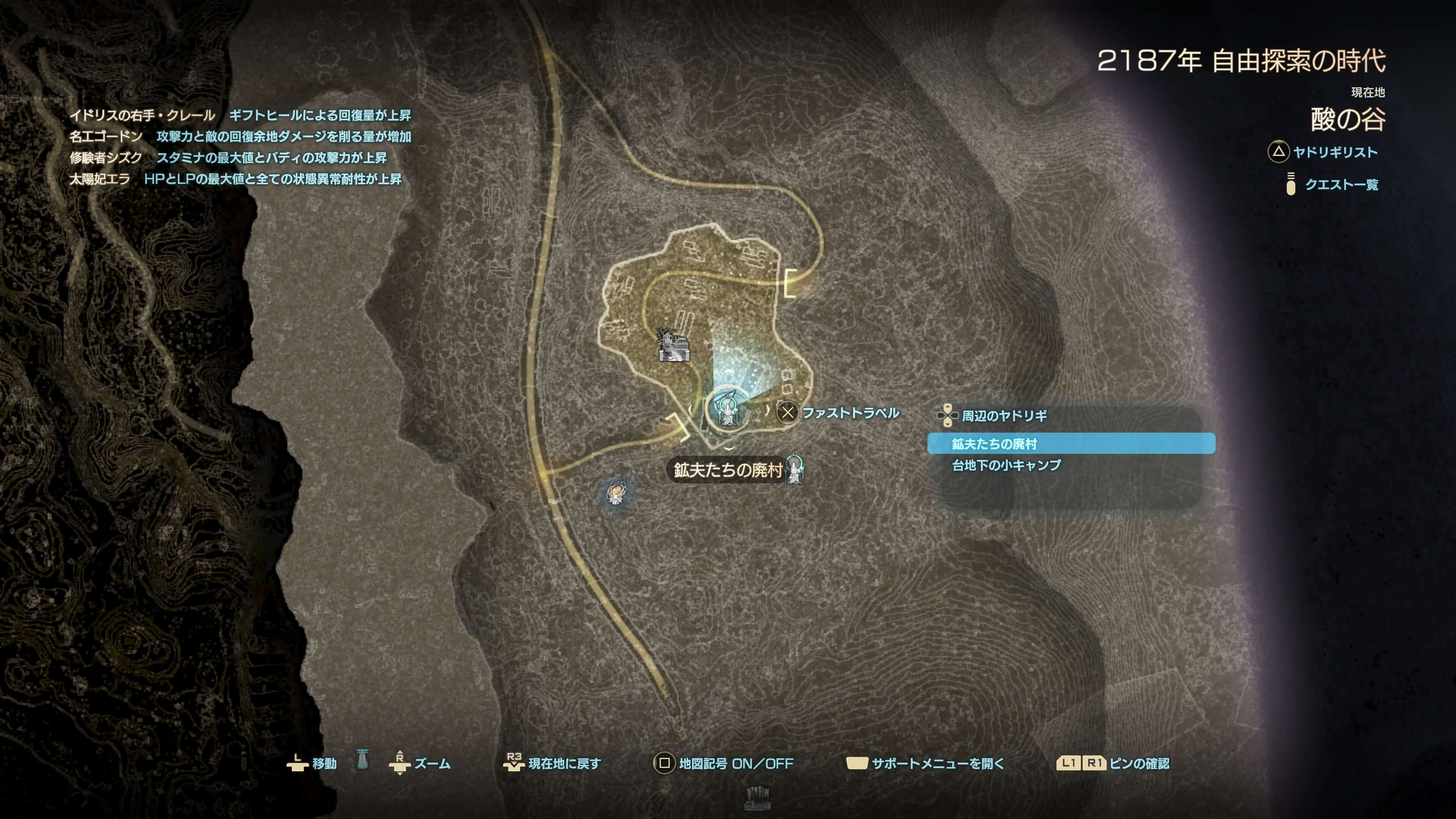 | 2 | 酸の谷に向かい、鉱夫たちの廃村まで移動する |