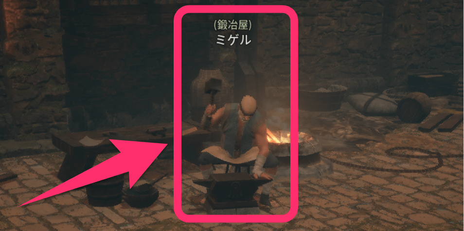 メニューまたは鍛冶屋から装備の強化が行える。どちらのアクセス方法でも違いはないので、好みの方法で装備を強化できる画面を開こう。なお、装備の強化は村でのみ行えるため、戦闘ステージにいる場合は一度帰還ポータルで村に戻ろう。