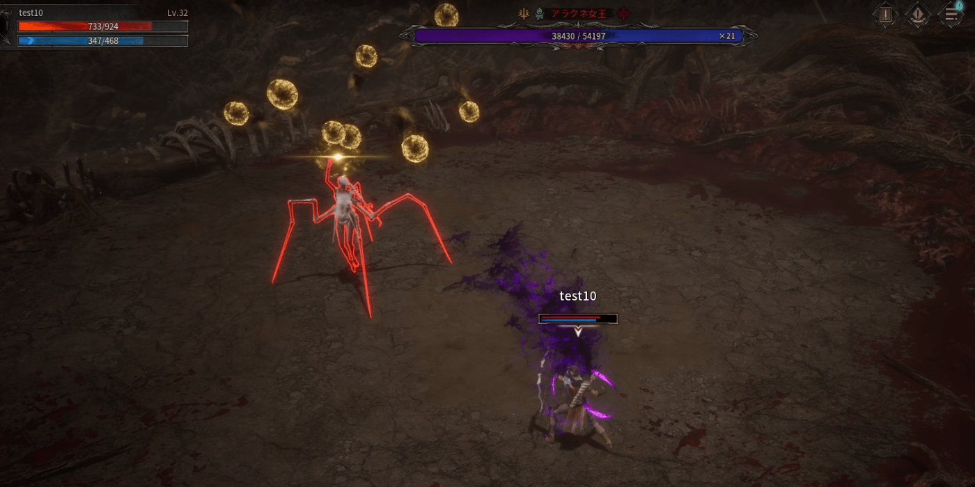 アラクネ女王は、豊富な攻撃パターンと火力の高い攻撃でこちらの体力を削ってくる強敵。無視して攻撃しているとすぐに倒されてしまうので、回避を最優先に行動しつつ、隙を見て反撃しよう。