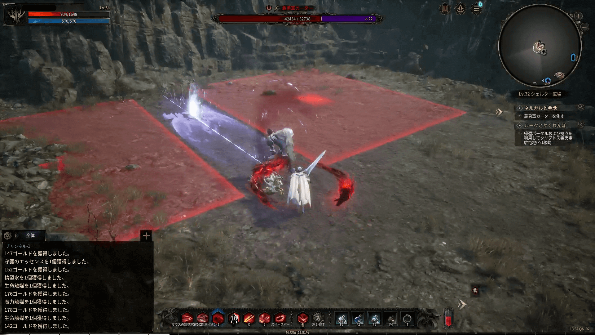 カイマンは、足元のほぼ全域を覆う広範囲攻撃を使う場合があり、被弾するとダメージと合わせて一定時間行動不能となってしまう。この範囲攻撃は必ず一箇所だけ安全地帯があるため、足元が赤くなったら攻撃範囲外のポイントを探して移動しよう。