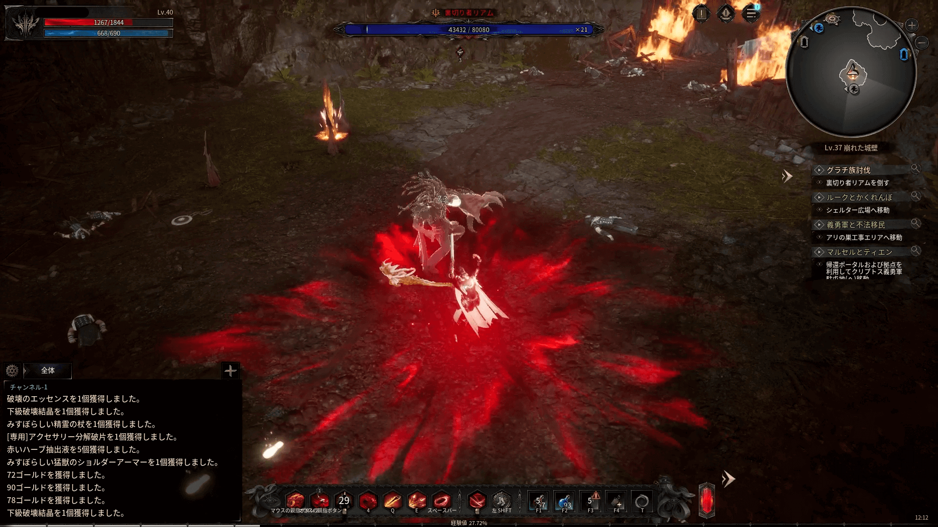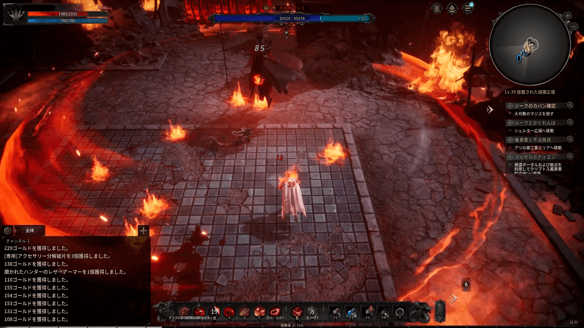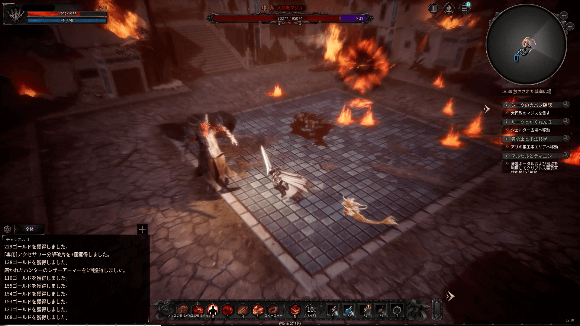 マジスの攻撃パターン変化後、両手に炎を持った状態で浮かび上がると、マジスを中心に引き寄せ効果のある広範囲攻撃が展開される。一定時間後に範囲内に大ダメージを与えてくるため、浮かび上がるのが見えたら高速移動スキルやダッシュを使って即座に距離を取ろう。