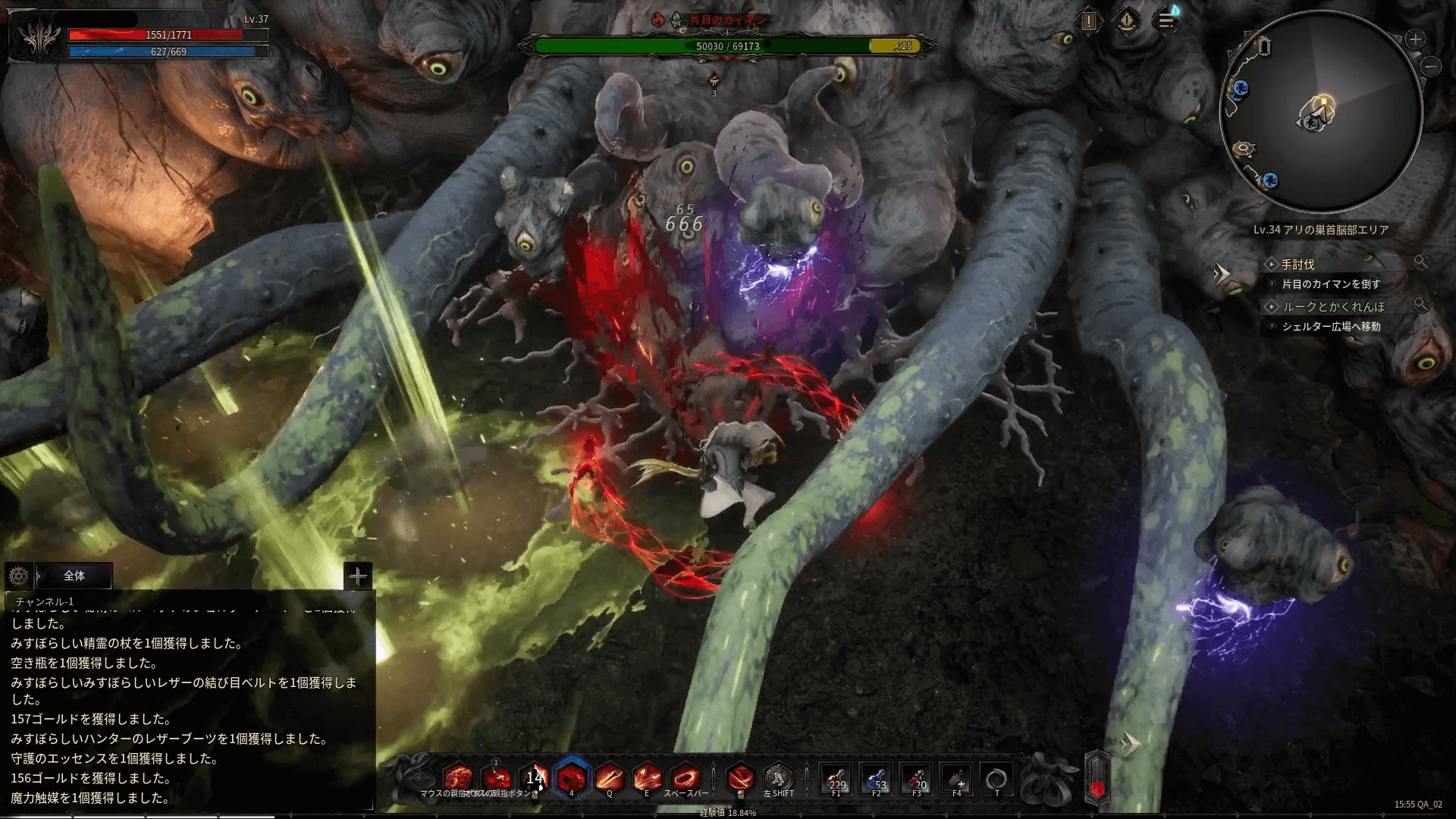 片目のカイマンは、触手を使った攻撃やレーザーのような攻撃を乱れ撃ちしてくる。攻撃のテンポもパターンもランダム性が高く回避が難しいが、本体の正面に立っていると触手攻撃とレーザー攻撃はほとんど当たらなくなる。そのため、基本的には本体の前に立って攻撃しよう。