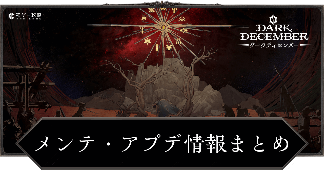 ダークディセンバーのメンテナンスとアップデート情報について紹介。最新のメンテナンス情報や過去のメンテとアプデ情報についても掲載しているため、ダークディセンバーでメンテナンス内容の確認について知りたい際の参考にどうぞ。