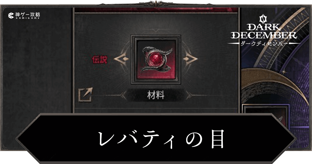 ダークディセンバーのレバティの目を紹介。入手方法や使い道、伝説等級を作る際に必要な素材についても掲載しているため、ダークディセンバーでレバティの目について知りたい時の参考にどうぞ。