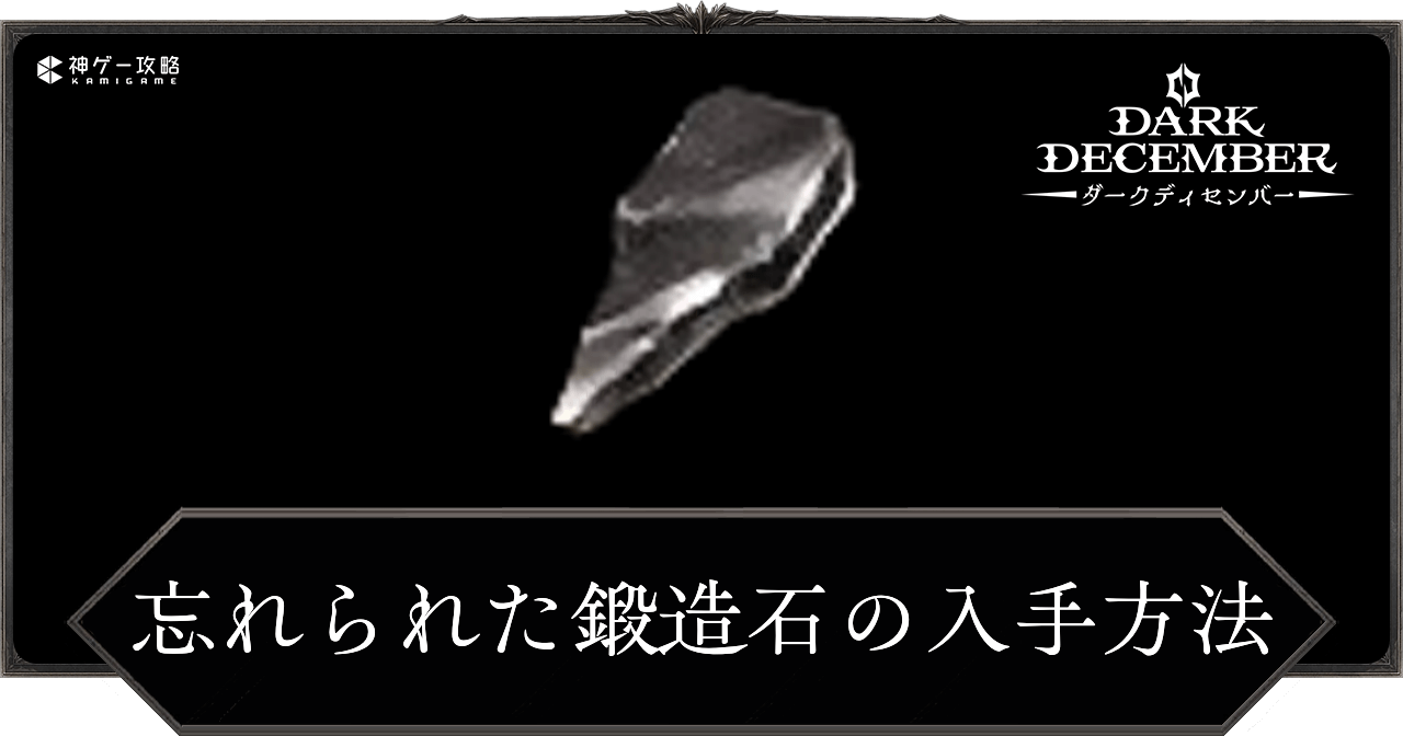 ダークディセンバーの忘れられた鍛造石の入手方法を紹介。忘れられた鍛造石の使い道や製作できるアイテムについても掲載しているため、ダークディセンバーで忘れられた鍛造石について知りたい時の参考にどうぞ。