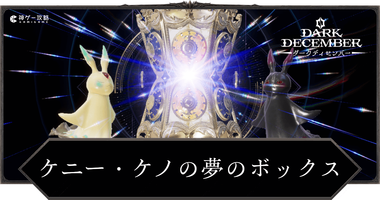 ダークディセンバーのケニー・ケノの夢のボックスの入手方法と排出アイテムを紹介。各夢のボックスの仕様についても掲載しているため、ダークディセンバーでケニーの夢のボックスとケノの夢のボックスについて知りたい時の参考にどうぞ。