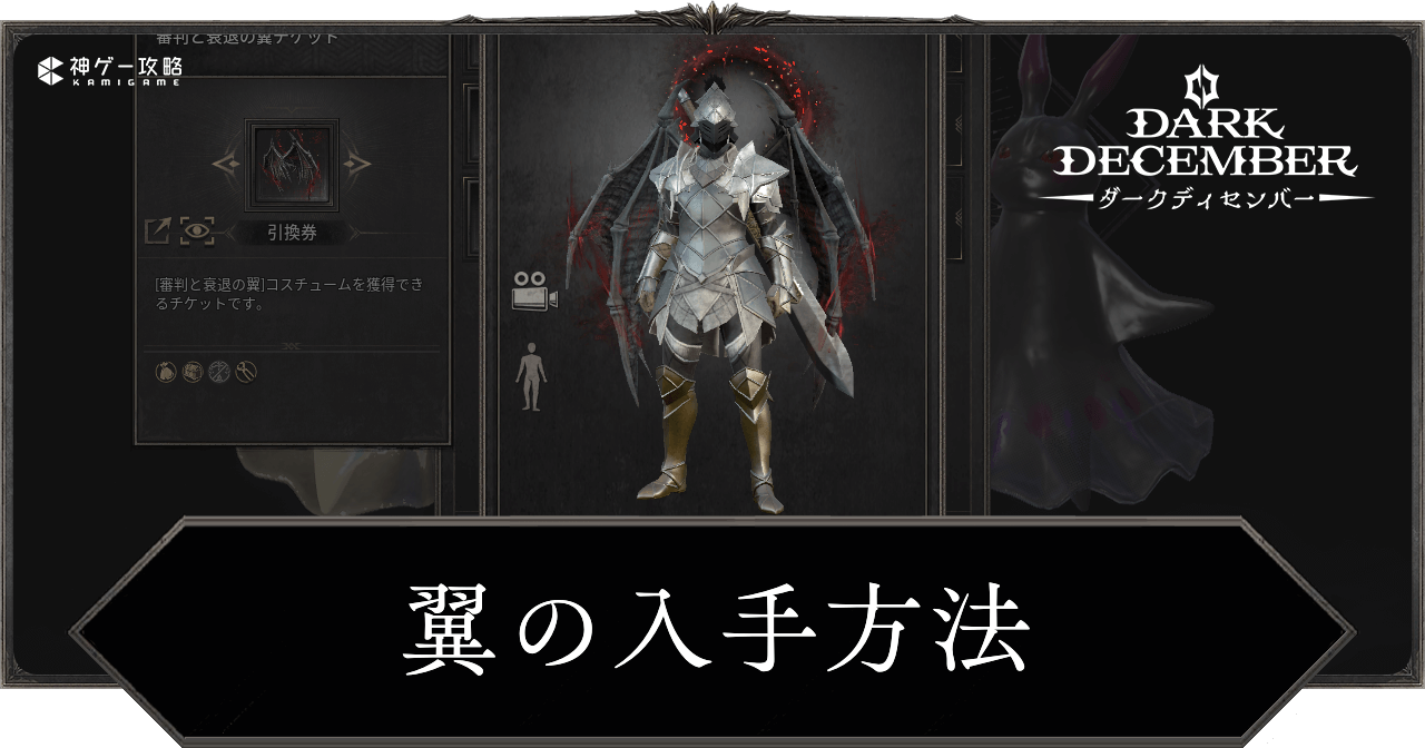 ダークディセンバーの翼の入手方法を紹介。翼の効果や装着方法についても掲載しているため、ダークディセンバーで翼について知りたい時の参考にどうぞ。