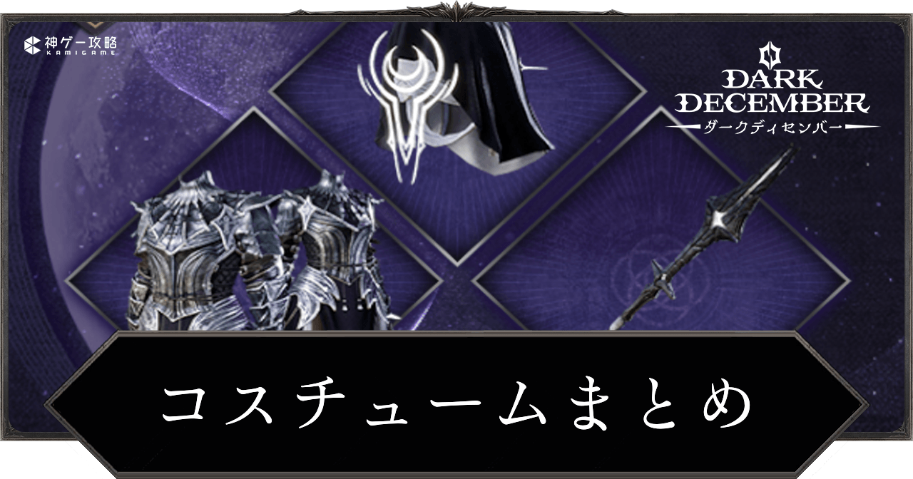 ダークディセンバーのコスチュームまとめを紹介。入手方法や翼についても掲載しているため、ダークディセンバーでコスチュームについて知りたい時の参考にどうぞ。