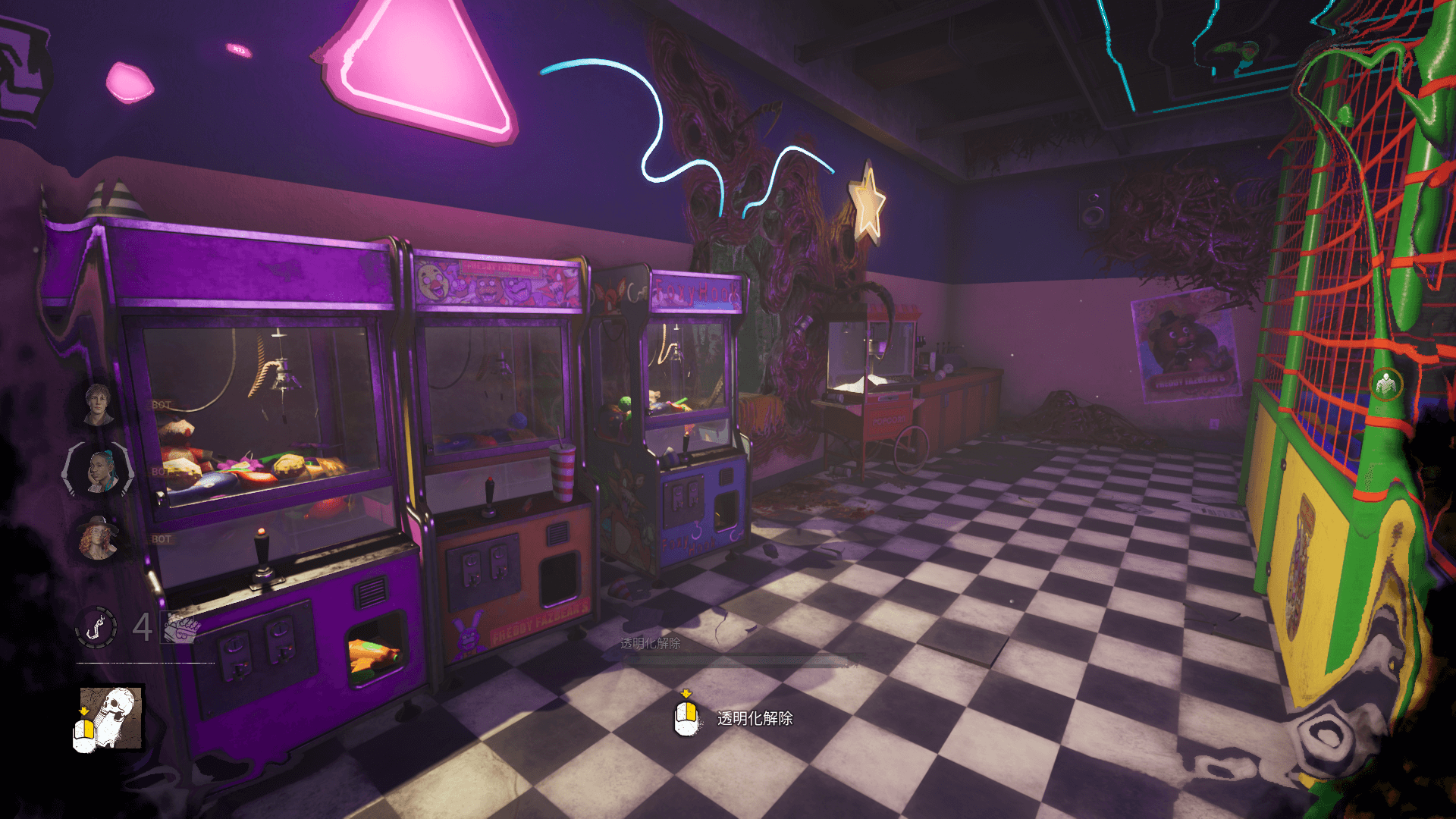 フレディファズベアーズピザは全マップの中でもかなり狭いため、サバイバーを吊ったフックにすぐ戻りやすい。そのため、吊る際はマップ中央の見晴らしの良い場所にし、救助へ向かうサバイバーを見つけたらすぐ戻って負傷やダウンを増やしていこう。