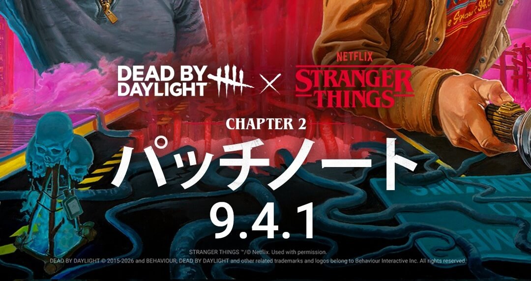 | 1/28 | 9.4.0 | ●新キラー「ファースト」実装 ●新サバイバー「ダスティン」「イレブン」実装 ●脅威範囲の視覚化機能の調整 ●ジャンプスタートクエストの実装 ●「Halloween」DLCの変更 問題の修正 |