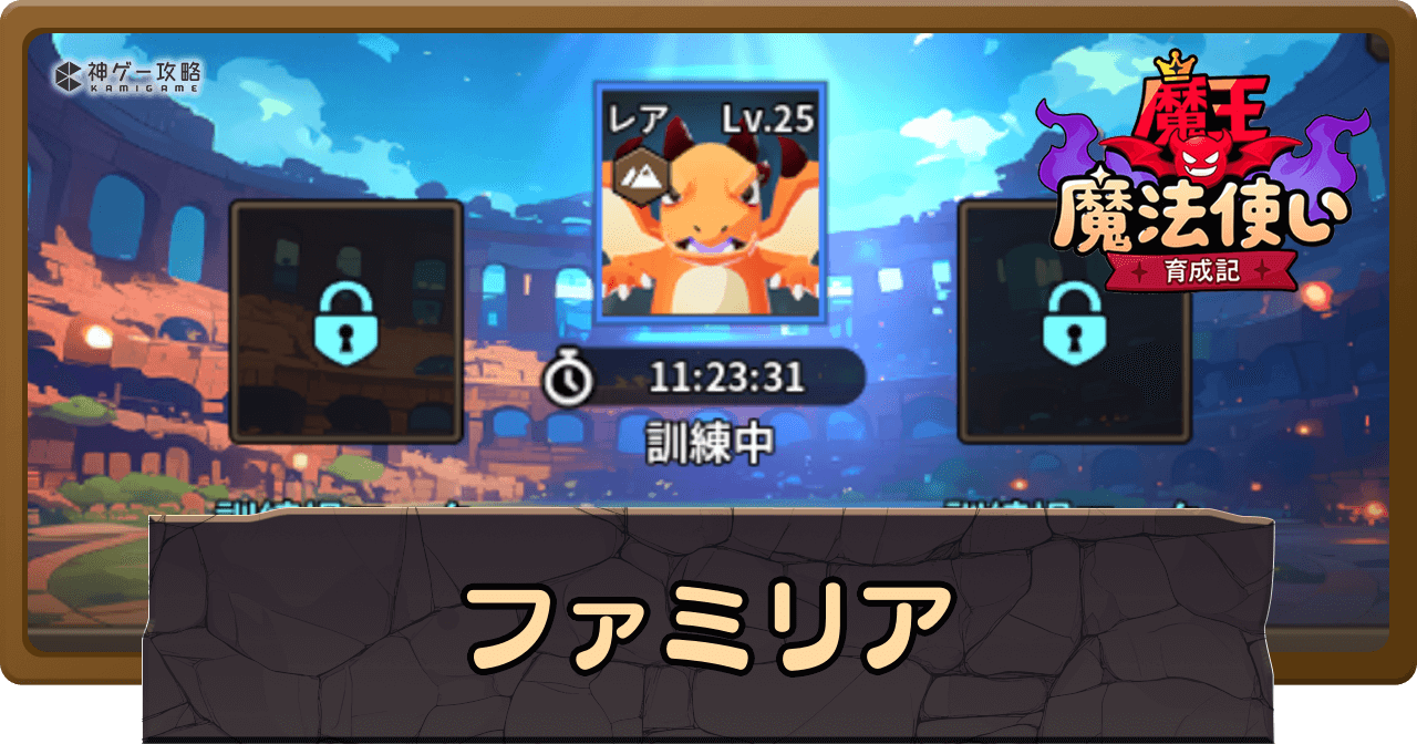 魔王魔法使い育成記の「ファミリア」について解説。ファミリアの強化方法や強化する優先度、ファミリアを変えるタイミングについても掲載中。ファミリアについて知りたい時の参考にどうぞ。