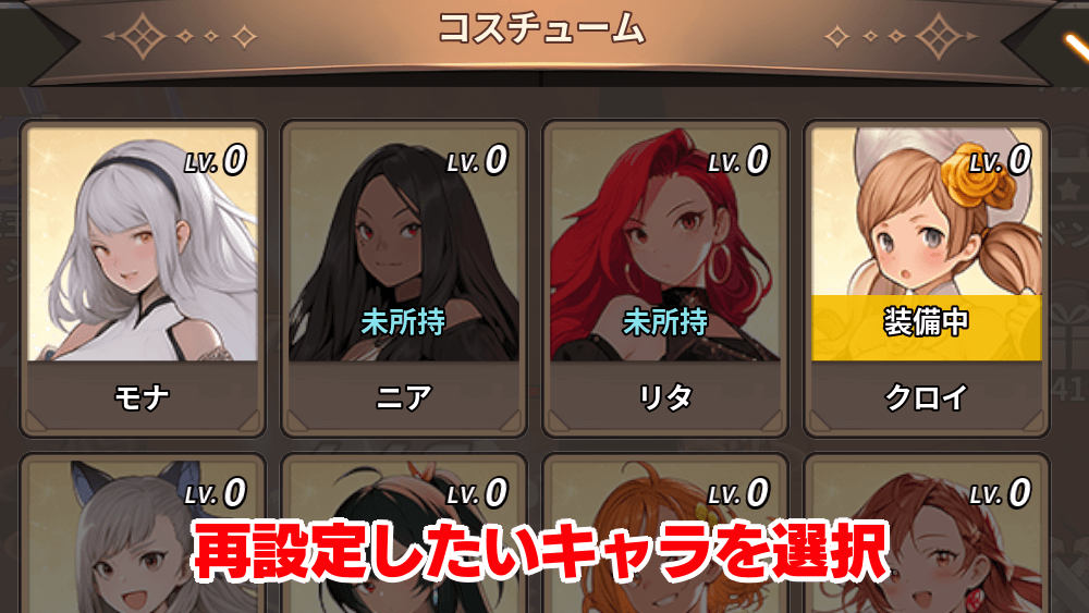 | 1 | コスチュームから再設定したいキャラを選択 |