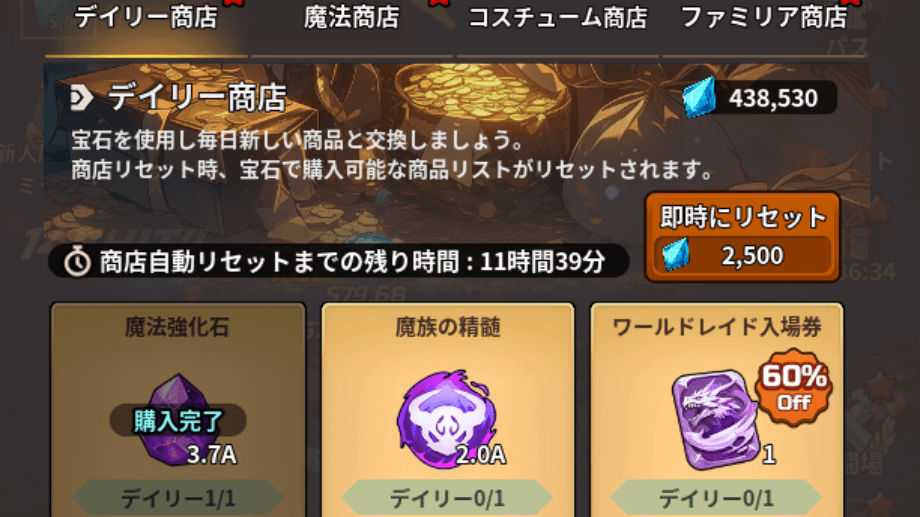 日付が変更されるとデイリー商店など、毎日更新される商店のラインナップが更新される。広告を見ると入手できる報酬もリセットされるため、時間があるときに受け取っておこう。