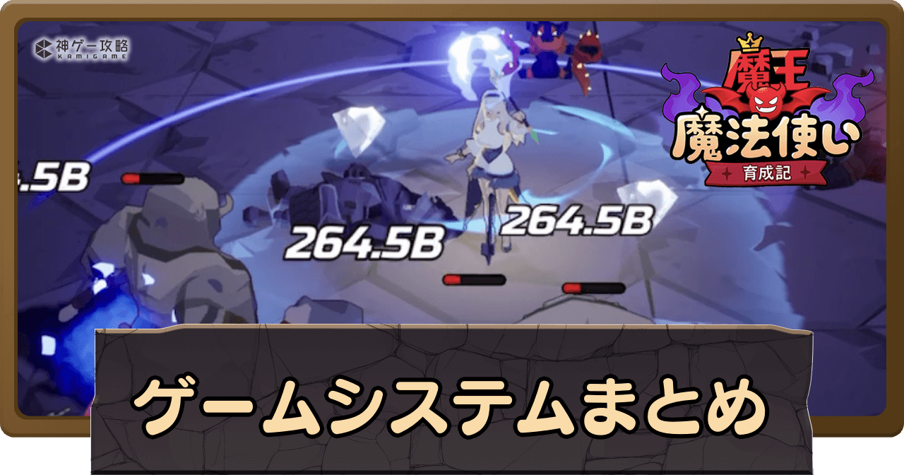 魔王魔法使い育成記の「ゲームシステム」について解説。放置やクエストなどの基本的な遊び方をはじめ、キャラの育成やバトルシステム、ゲームの概要についても掲載中。ゲームシステムについて知りたい時の参考にどうぞ。