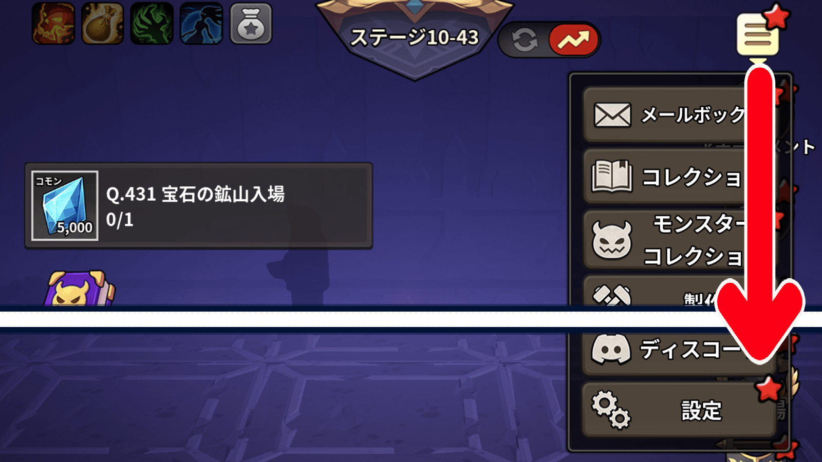| 1 | 画面右上のアイコンから「設定」を開く |