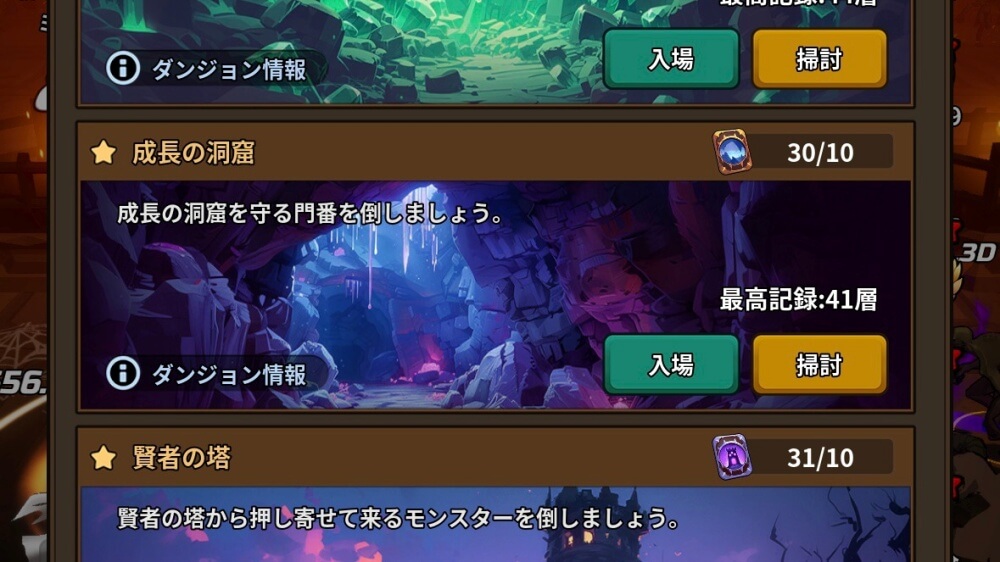 | ダンジョンの種類と入手素材一覧 |