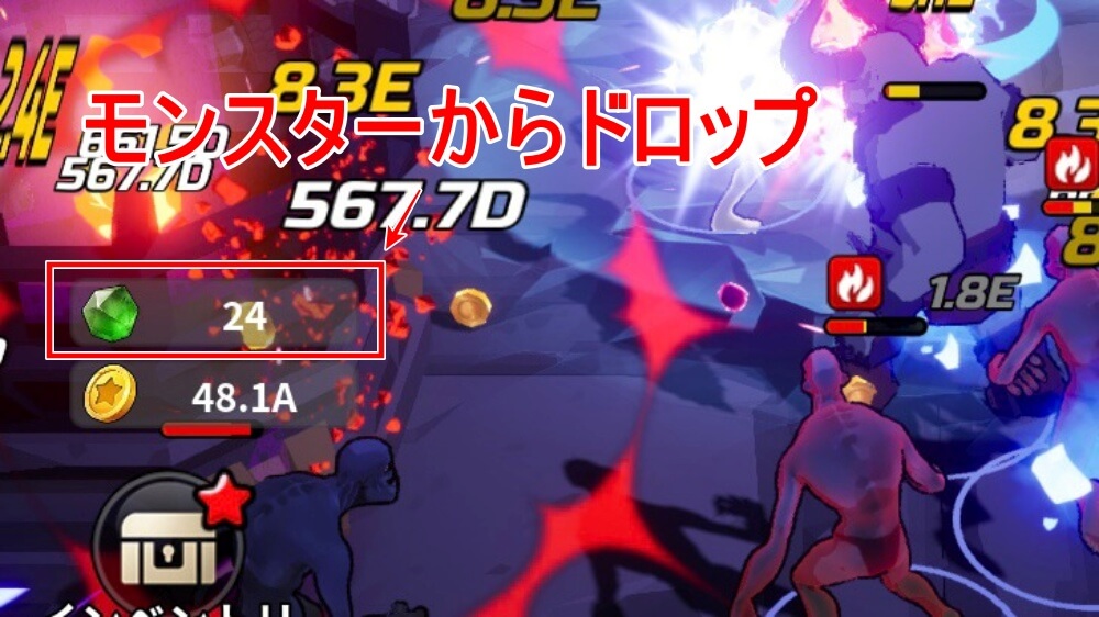 ファミリア強化石は、モンスターを倒すごとに確率で入手できる。1度に入手できる数は少ないが、時間をかければ大量のモンスターを倒すことができるので、放置しているだけでコンスタントに強化石を入手可能だ。