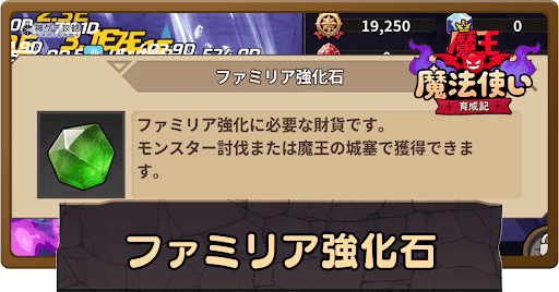 魔王魔法使い育成記の「ファミリア強化石」について解説。"ファミリア強化石"の入手方法や使い道、ファミリアについても掲載中。魔王魔法使い育成記のキャラ育成の参考にどうぞ。
