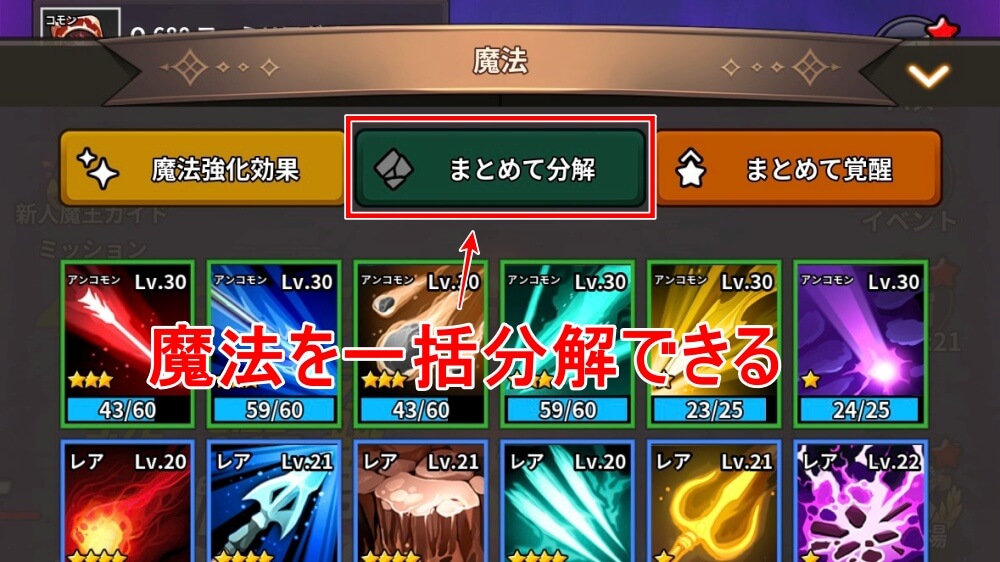 魔法スクロールは、魔法を分解しても入手できる。魔法の分解は、1つ魔法を入手してもできないので、複数個引いて覚醒も終わった時に分解しよう。