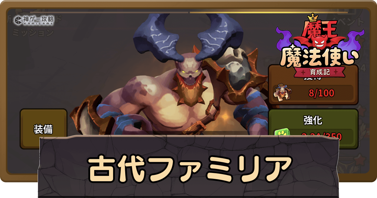 魔王魔法使い育成記の「古代ファミリア」について解説。古代ファミリアの入手方法や古代ファミリアの一覧も掲載中。魔王魔法使い育成記の古代ファミリアについて知りたい時の参考にどうぞ。