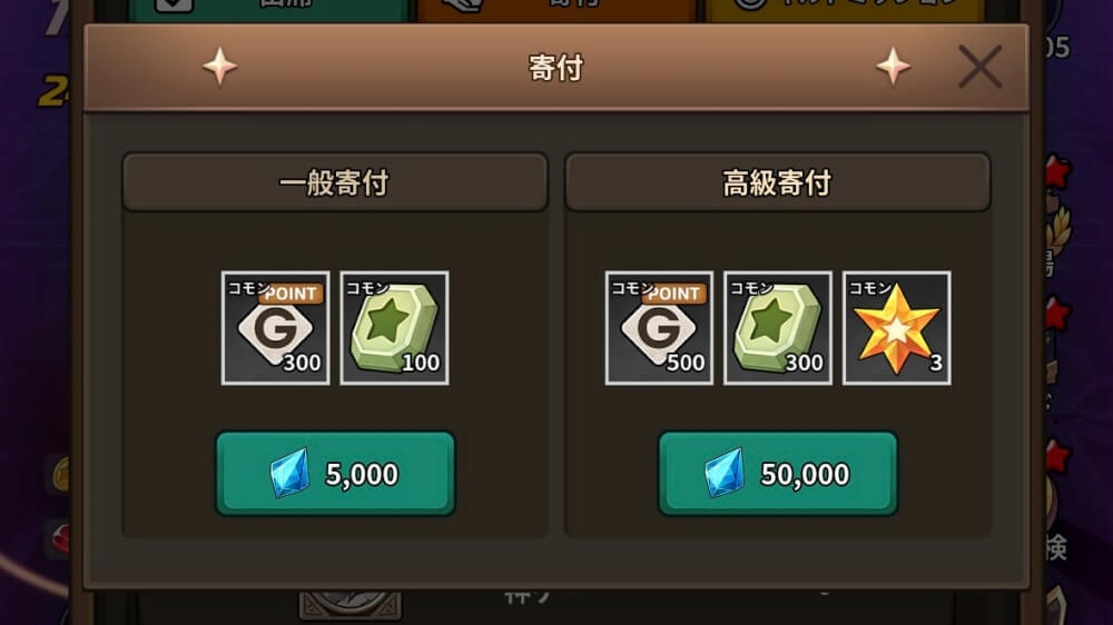 ギルドコインは、所属しているギルドに寄付をすると入手できる。所属しているギルドトップの「寄付」を押して、宝石を寄付しよう。寄付する宝石の数で入手できるコイン数が変わるので、宝石の所持状況で寄付する宝石数を選ぶと良い。