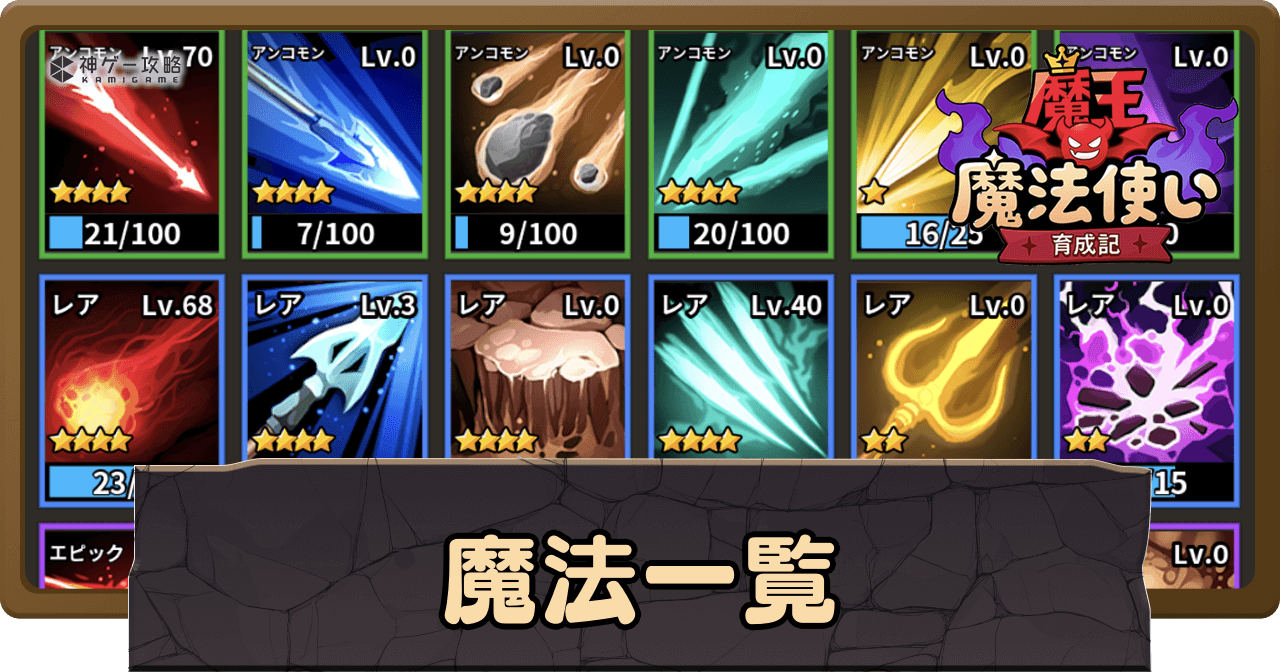 魔王魔法使い育成記の「魔法」について解説。魔法を一覧で掲載しているほか、魔法の入手方法についても掲載中。魔王魔法使い育成記の魔法について知りたい時の参考にどうぞ。