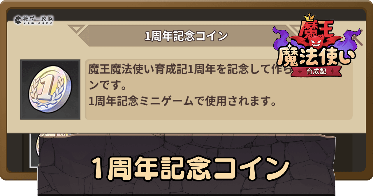 魔王魔法使い育成記の「1周年記念コイン」について解説。1周年記念コインの効率的な集め方や使い道についても掲載中。魔王魔法使い育成記の1周年記念コインについて知りたい時の参考にどうぞ。