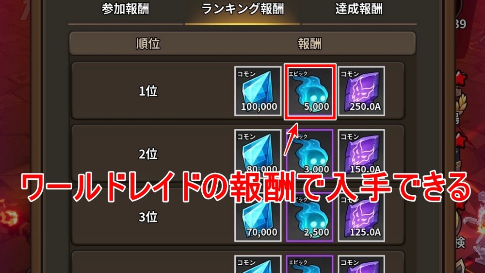 ワールドレイドの報酬で入手できる
