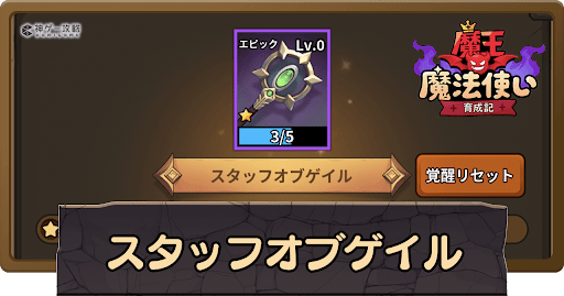 魔王魔法使い育成記の「スタッフオブゲイル」を解説。スタッフオブゲイルの性能や入手方法、コレクション効果についても掲載しています。