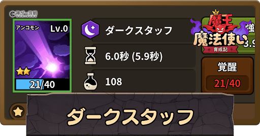 魔王魔法使い育成記の「ダークスタッフ」を解説。ダークスタッフの性能や入手方法、コレクション効果についても掲載しています。