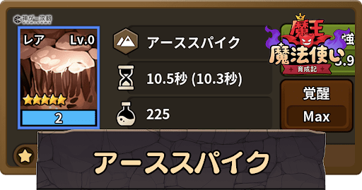 魔王魔法使い育成記の「アーススパイク」を解説。アーススパイクの性能や入手方法、コレクション効果についても掲載しています。