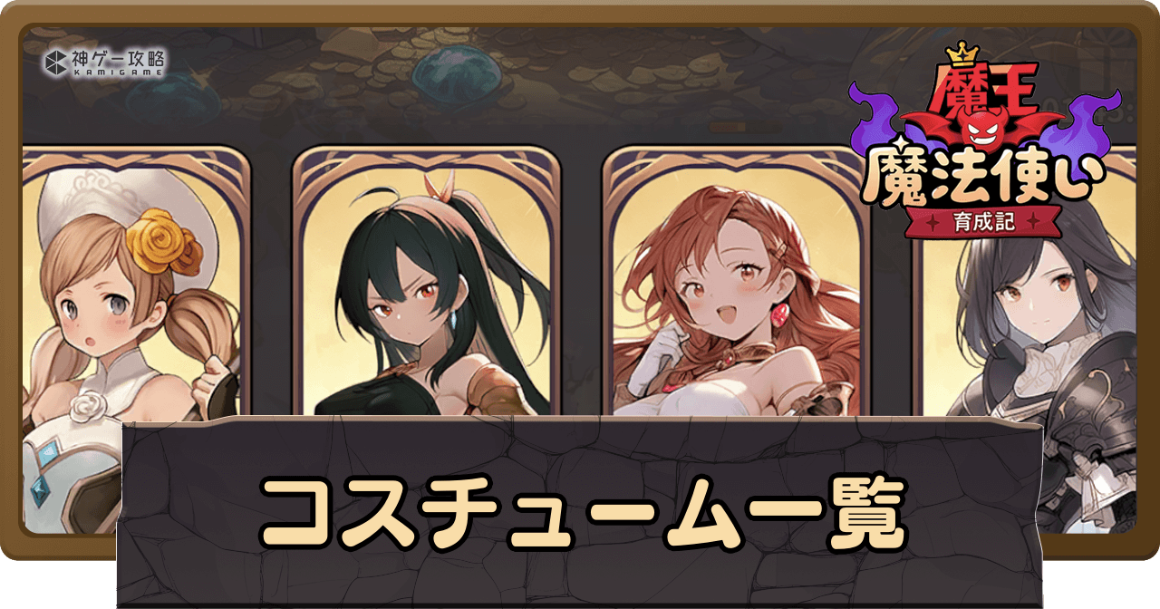 魔王魔法使い育成記の「コスチューム」について解説。コスチュームを一覧で掲載しているほか、コスチュームの入手方法や強化といった仕様についても掲載中。魔王魔法使い育成記のコスチュームについて知りたい時の参考にどうぞ。