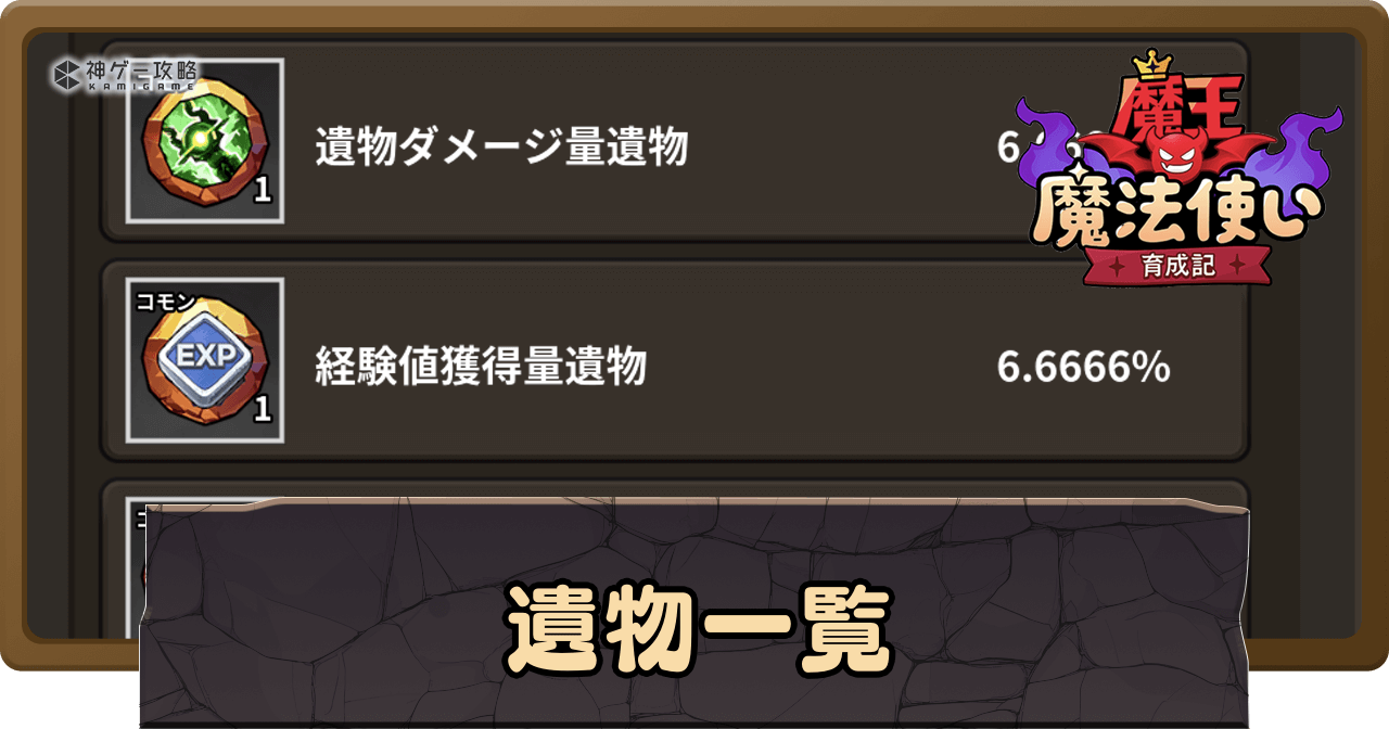 魔王魔法使い育成記の「遺物」について解説。遺物を一覧で掲載しているほか、遺物の入手方法についても掲載中。魔王魔法使い育成記の遺物について知りたい時の参考にどうぞ。
