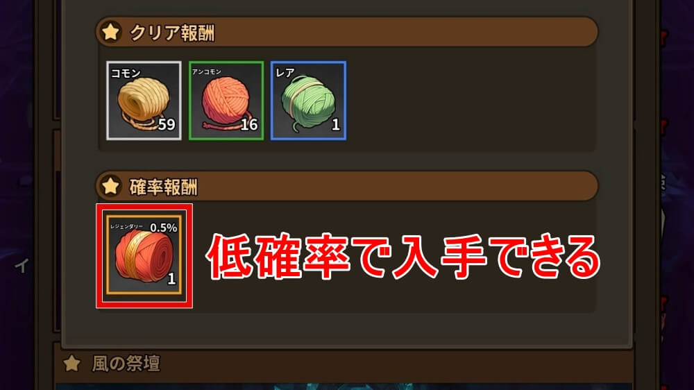低確率でレジェンダリー素材もドロップする