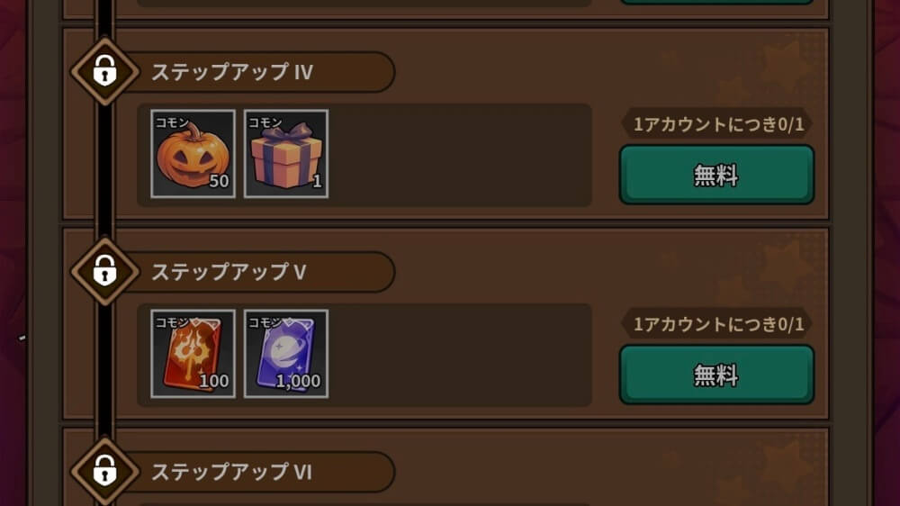 ハロウィンステップアップ報酬