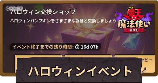 魔王魔法使い育成記の「ハロウィンイベント」について解説。ハロウィンイベントの内容や進め方、報酬やかぼちゃ集めのコツなどについても掲載中。魔王魔法使い育成記のハロウィンイベント攻略の参考にどうぞ。