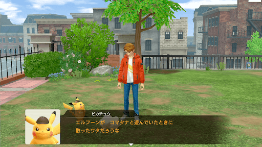 カフェでコアルヒーの行方が分かったら、次は赤いポケモンの行方を探そう。デニス邸の前の道を右に行くと公園に入れて、様々な人やポケモンから話を聞ける。