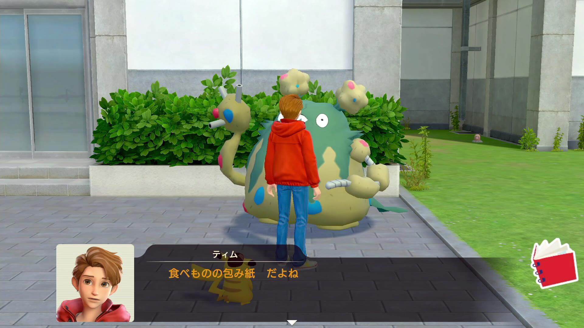 研究所の調査ポイント 正面玄関 正面玄関② 側面入り口 研究所奥のドラム缶清掃員の話を聞いたら、研究所の周囲を調べる。入り口の確認したら、ピカチュウが今まで協力してくれたポケモンを連れてくるため、すべてのポケモンと協力して事件を解決しよう。