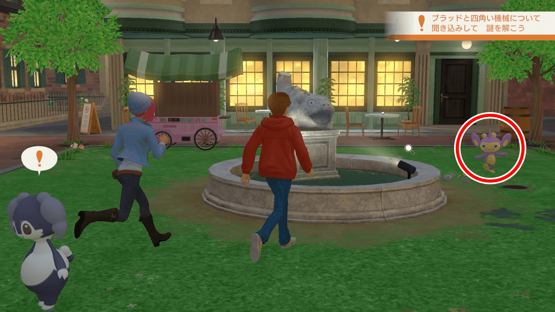 噴水公園にいるエイパムに話かけると、ストーリーが進行しサブクエストクリアとなる。