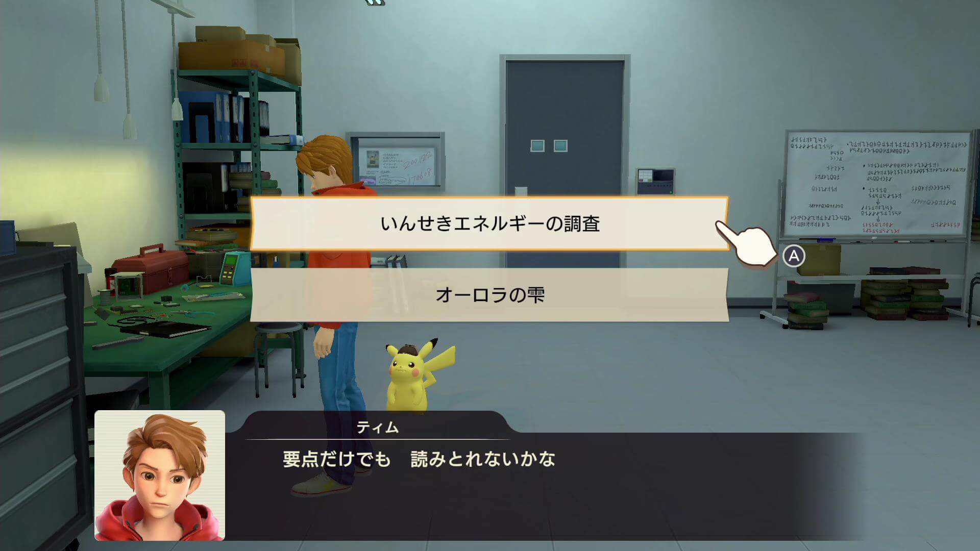 B5Fの装置の暗証番号。装置を止めるために、ピカチュウ側の装置にパスコードを入れる。マーロックの研究室で見つけたパスコードを入れると、ピカチュウを開放可能だ。