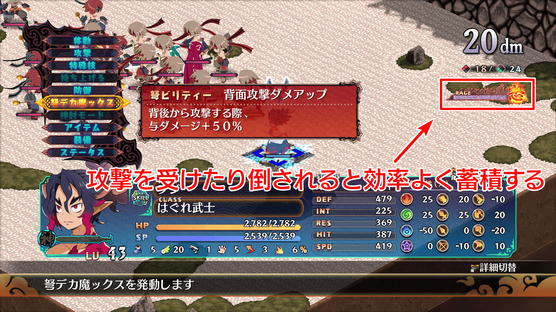 新要素の弩デカ魔ックスは攻撃射程が無限で、攻撃範囲も5×5マスと極めて広いので積極的に活用しよう。敵から攻撃を受けたり、倒された際にゲージが大きく溜まるため、レベルの低いキャラを犠牲にしてゲージを貯め、本命のキャラで一掃する使い方が強力だ。