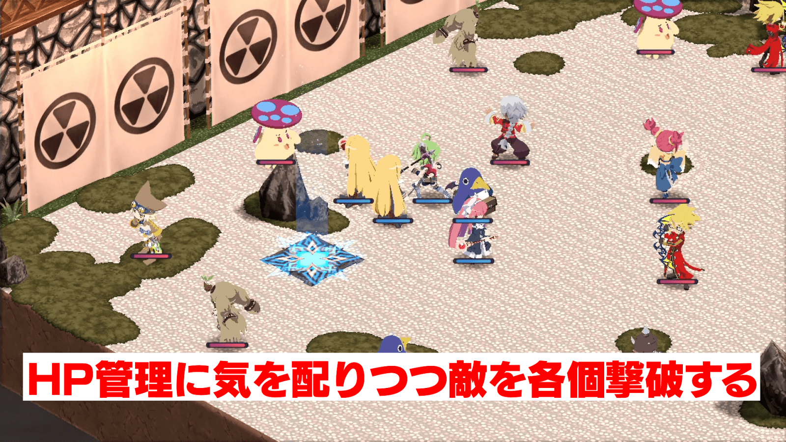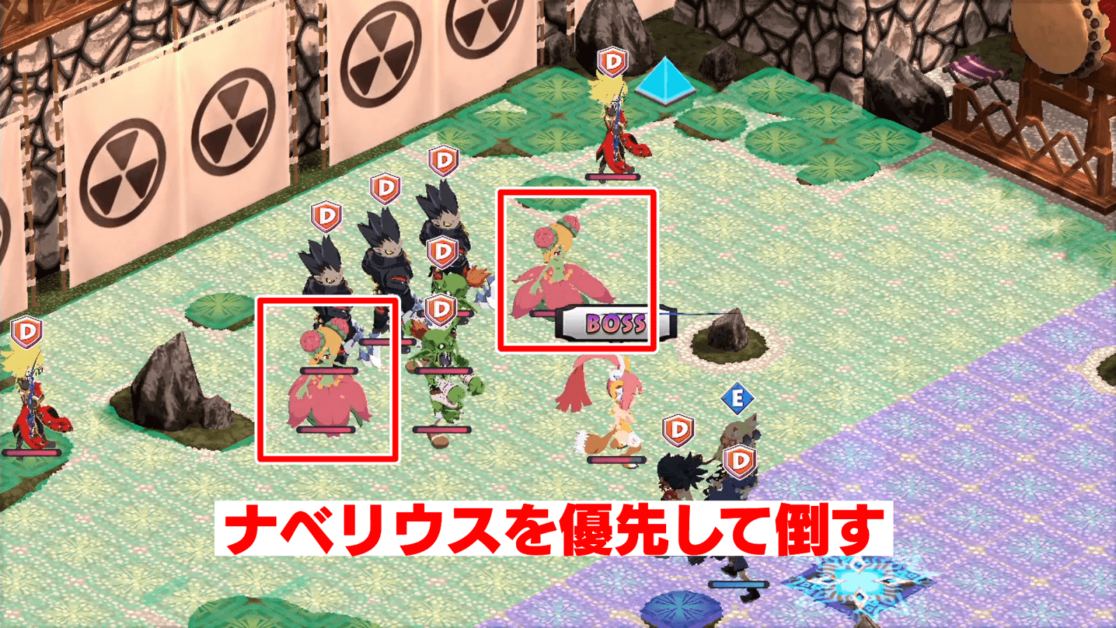 | 1 | レベルの低い味方を3体ステージ中央に配置する |